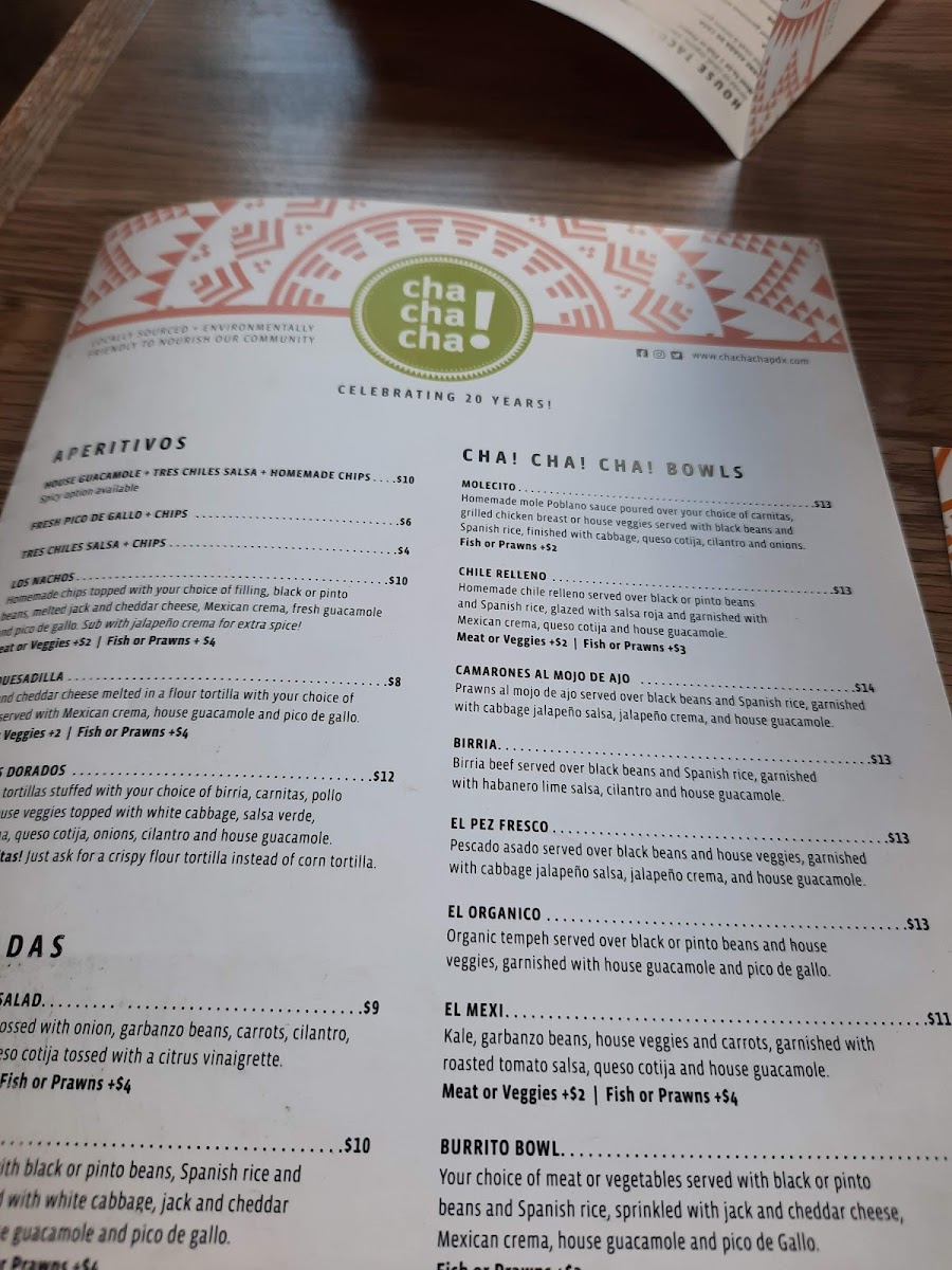 Welcome to Cha Cha Cha Taqueria Moody, a hidden gem located at 3135 S Moody Ave, Portland, OR. This inviting taqueria offers a vibrant menu brimming with authentic Mexican flavors. Guests rave about their enchiladas, especially the chicken topped with a rich red sauce, and the carnitas, perfectly seasoned and tender. Don't miss out on the homemade salsa that packs a delightful kick.